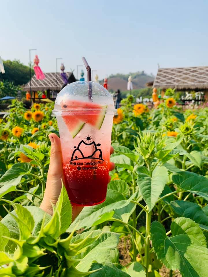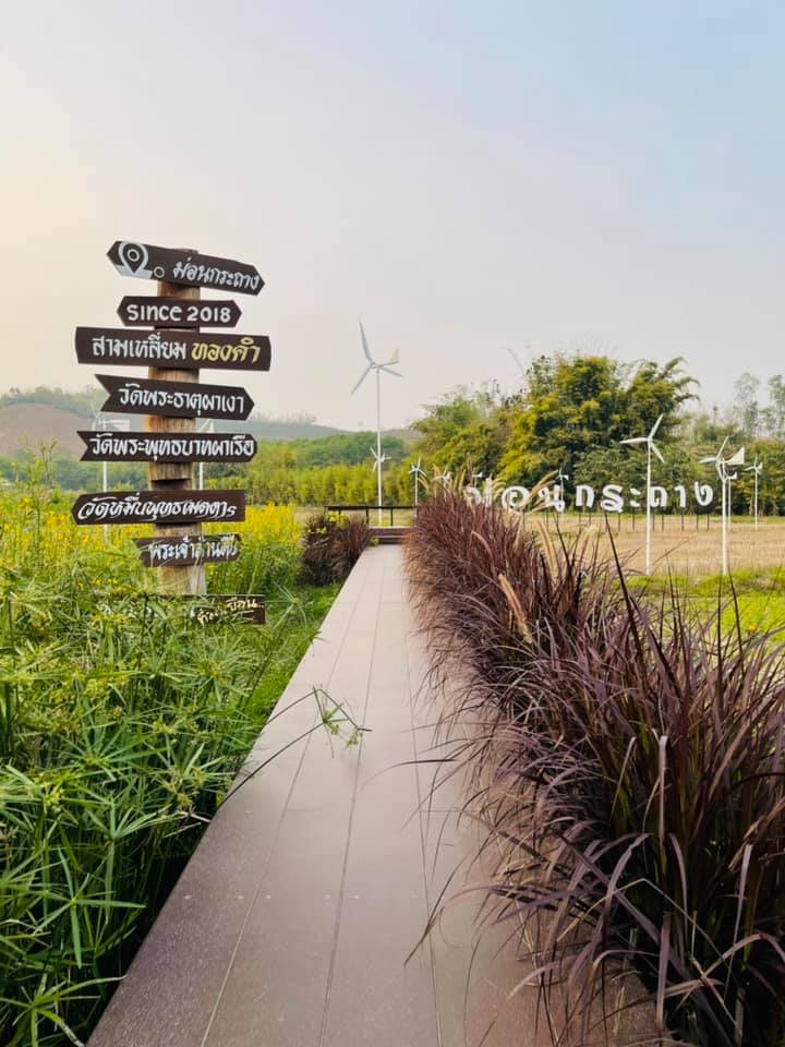 แต่ละซุ้ม แต่ละจุดอยู่ท่ามกลางนาข้าวเขียวขจี ทุ่งทานตะวันสีเหลืองระรานตา